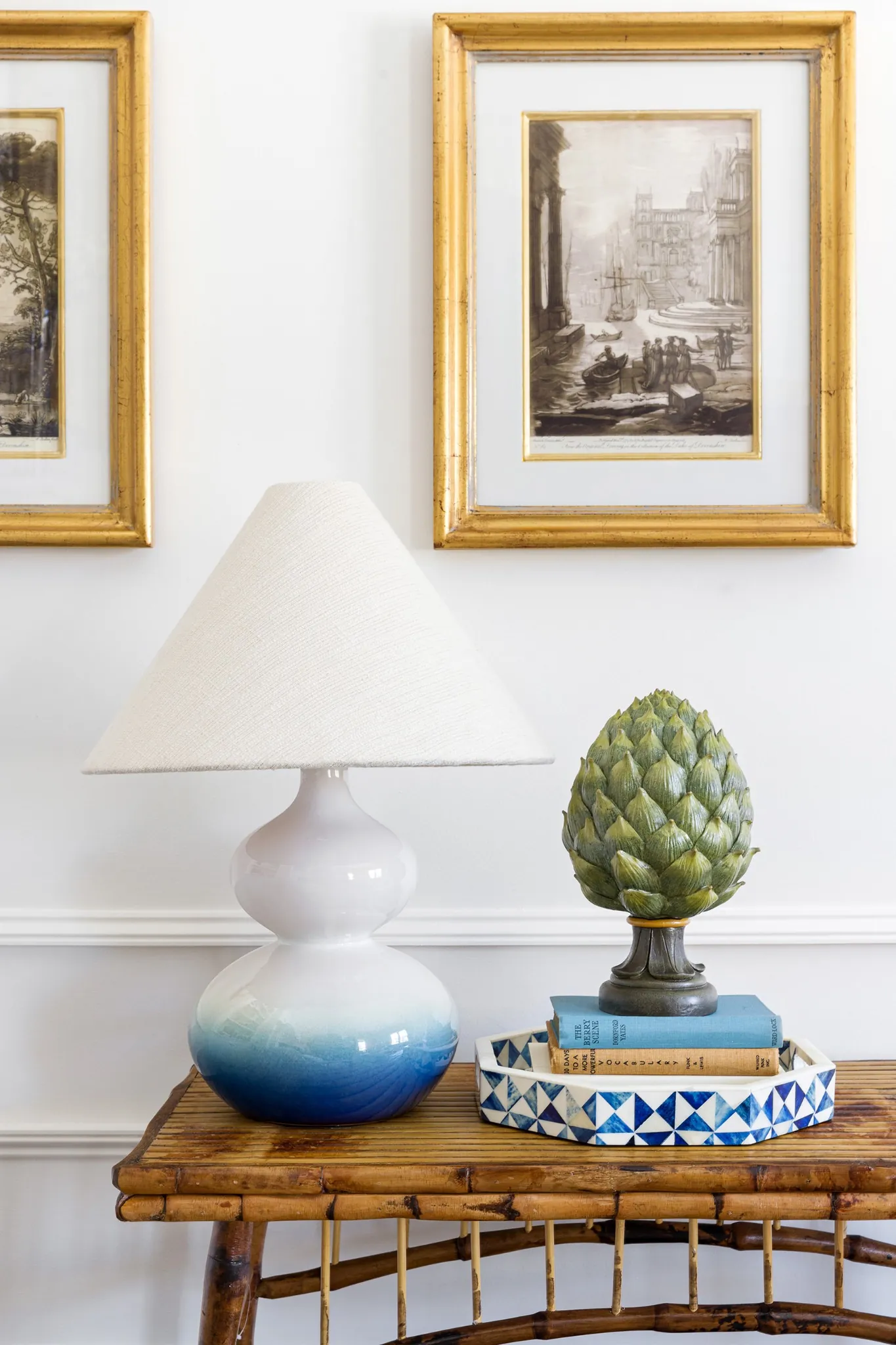 Aged brass with ceramic Ombre Blue.